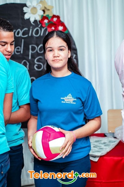 La estudiante de 6to. grado Dainirys Vélez Liz pronunció las palabras de agradecimiento, en el que aprovechó para agradecer a la institución que rige la educación física en el país, en especial al director ejecutivo Alberto Rodríguez por la entrega de los recursos didácticos para este liceo.