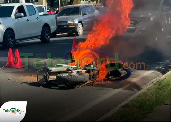 Se incendia motocicleta de la Policía Nacional en San Francisco de Macorís