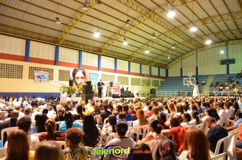 San Francisco de Macorís.- Cientos de fieles católicos acudieron en la noche del sábado 25 de enero, a la charla-conferencia “Cree, crece y confía”, con el evangelista Saulo Hidalgo, en el Polideportivo del Club San Martín.