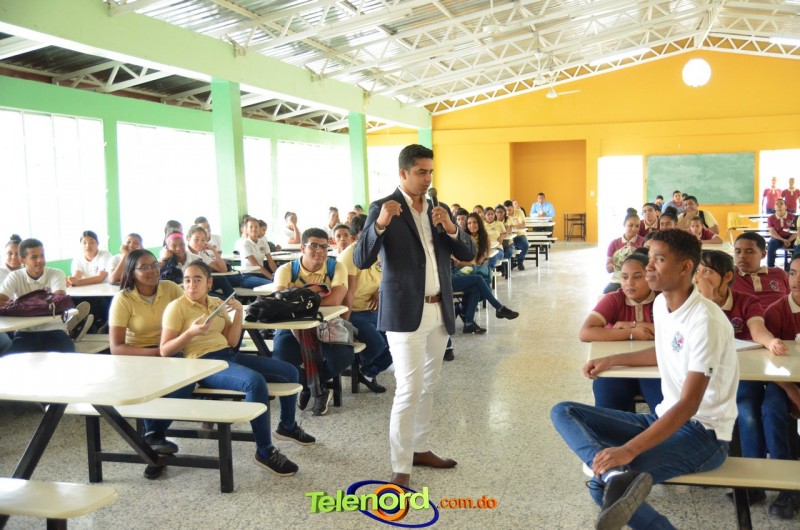 San Francisco De Macorís.- Julio César Vargas Jiménez, ejecutivo de Teleoperadora del Nordeste (Telenord) sostuvo un conversatorio con los jóvenes del Politécnico Vicente Aquilino Santos, en la mañana del jueves 30 de enero.