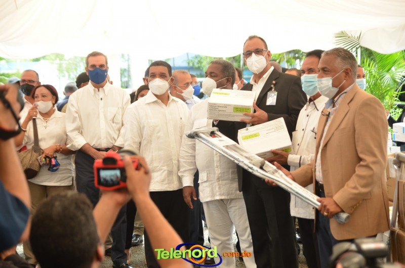 Junto con Abinader, estuvo presente el encargado del Gabinete de Políticas Sociales Tony Peña Guaba, quien destaco que los insumos provienen de donaciones realizadas por diversas instituciones, empresas y fundaciones, como El Hospital Fundación Buen Samaritano.