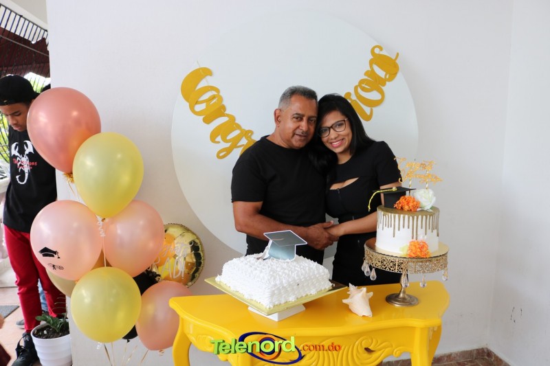 Yislenny festejó este gran logro en su vida, junto a sus padres Jose Antonio Holguín y Judith de la Cruz, familia, donde estos mostraron su regocijo, alegría y el orgullo que sienten al verla realizar este anhelado sueño, de graduarse con honores Magna Cum Laude.