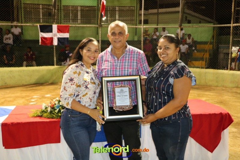 Se le entregaron reconocimientos por sus aportes al deporte y, a la propia liga a : Jorge Luis Ureña, al Profesor William Hernández presidente de la Unión Deportiva de la Provincia Duarte (UDEPRODU) y, a Renny Peralta, quiénes a su vez fueron bateador, lanzador y receptor de honores respectivamente, mientras que el jugador Raylin Cuello hizo el juramento deportivo.