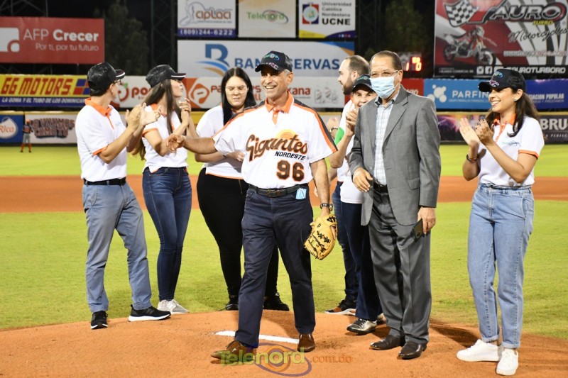 Presidente de Telenord lanza primera bola en el juego Toros vs Gigantes