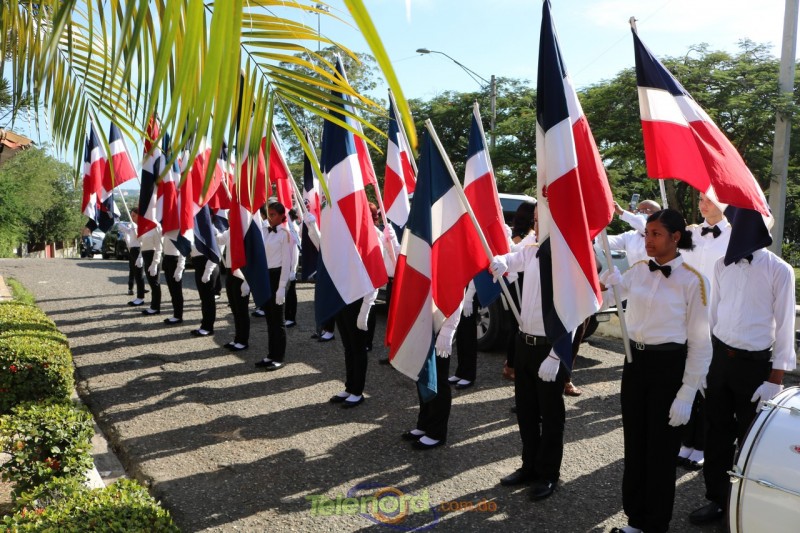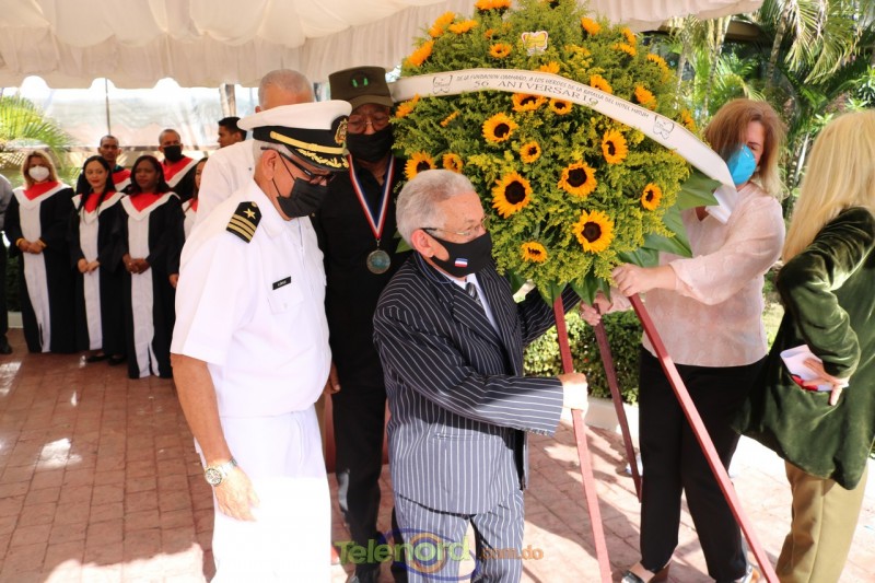 Los abanderados del Liceo Pedro Henriquez Ureña acompañaron la ofrenda floral al busto del coronel Juan María Lora Fernández, caído en combate en esa batalla.