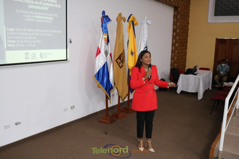 San Francisco De Macorís. - La miembro suplente de la Junta Central Electoral (JCE) Anibelca Rosario fue la expositora de la conferencia "El rol de la Junta Central Electoral y los valores democráticos en el contexto de la comunicación", ofrecida en la mañana del sábado 5 de febrero.