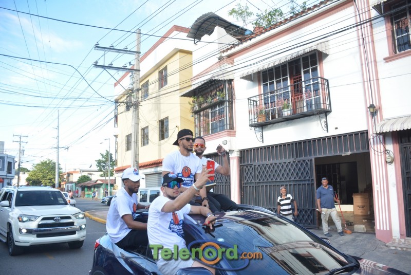 La caravana tuvo como punto de partida la explanada del polideportivo Mario Ortega de dicho club, encabezada por los integrantes del equipo comandados por su capitán Carlos Taveras y el jugador más valioso de la final Eduardo Garcia.