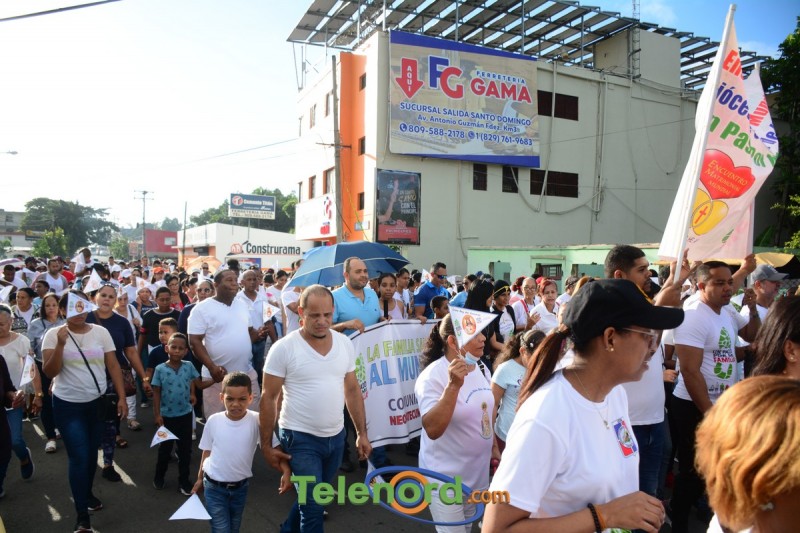 Esta caminata inició desde la Parque Duarte, recorriendo varias calles del casco urbano hasta llegar al Santuario de Getsemaní, donde se realizó una gran eucaristía por las familias presidida por el Obispo de la Diócesis Mons. Alfredo de la Cruz y acompañado por los párrocos de las iglesias católicas de la ciudad.