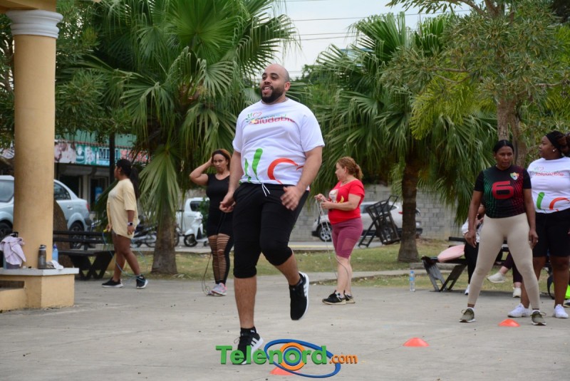 Esta clase fue impartida por el entrenador Raymond Fit 56, y se llevó a cabo como parte de las actividades de la campaña “Semana Saludable”, bajo la coordinación de Jer Yan Lantigua, con el respaldo de Teleoperadora del Nordeste (Telenord).