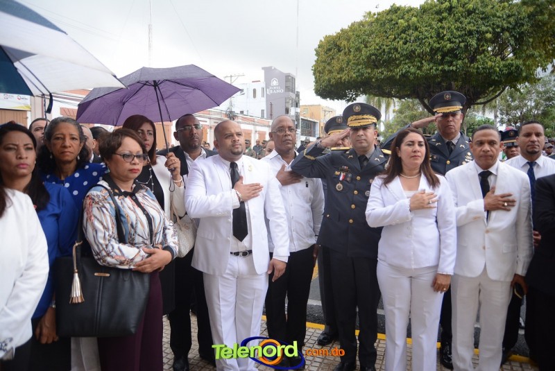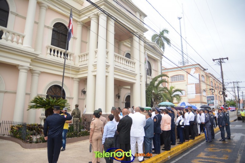 Este solemne acto se realizó en la explanada del Palacio Municipal de esta ciudad, donde además se interpretaron las notas del Himno Nacional Dominicano, con la presencia de un pelotón del Ejército Nacional y del Benemérito Cuerpo de Bomberos del municipio.
