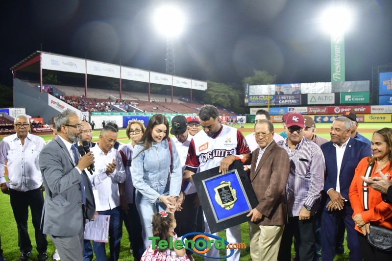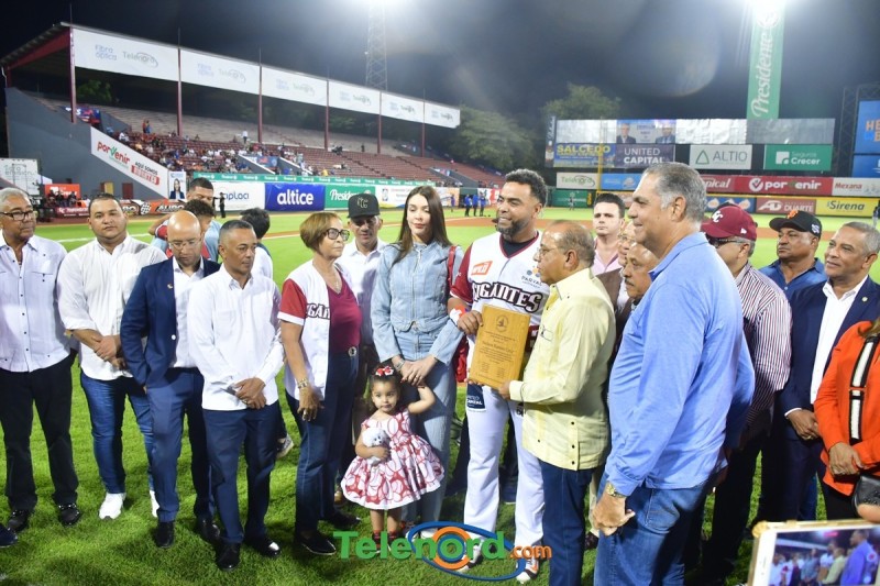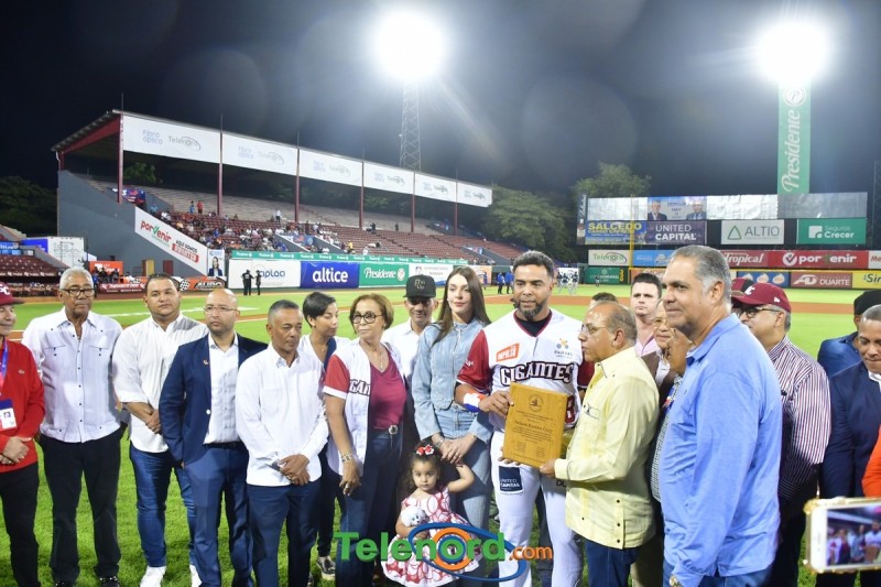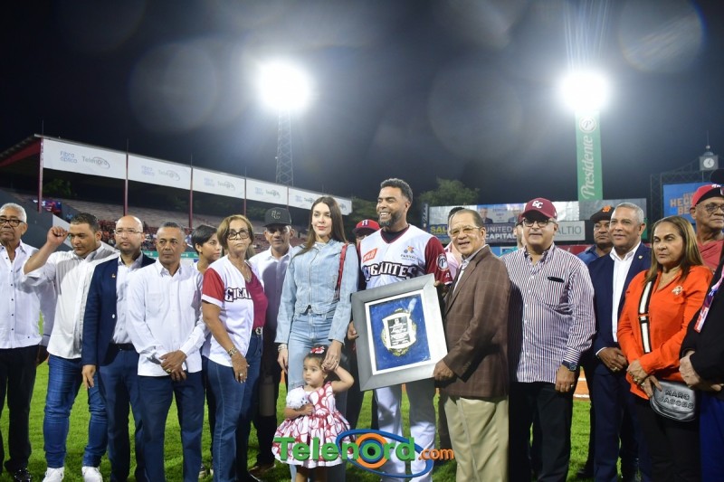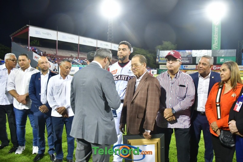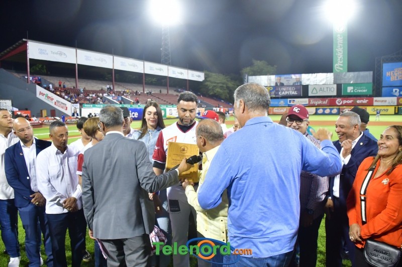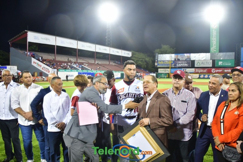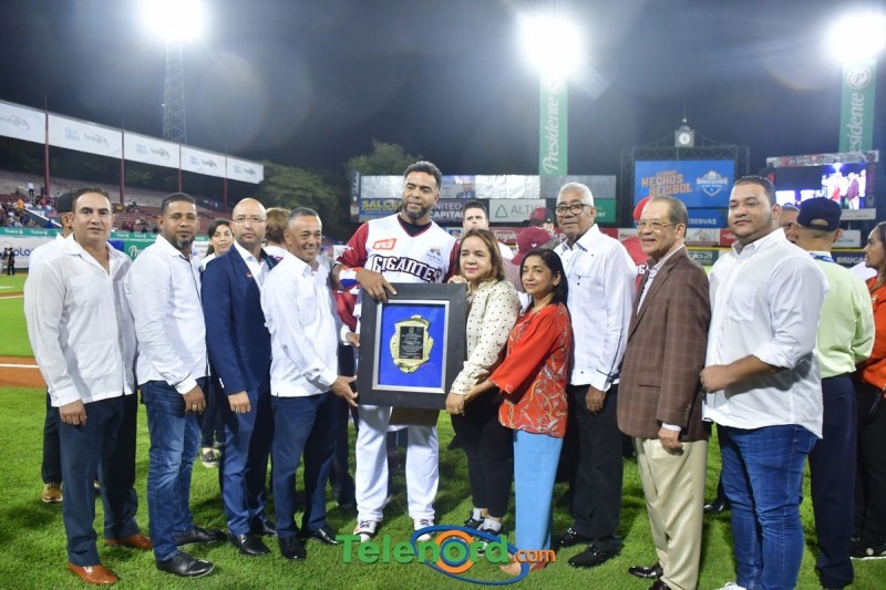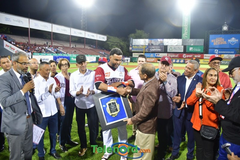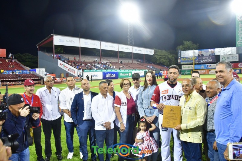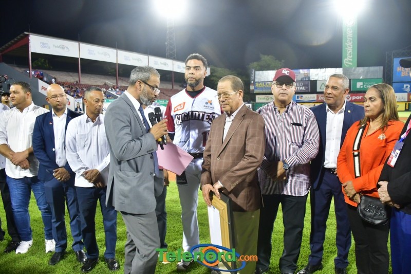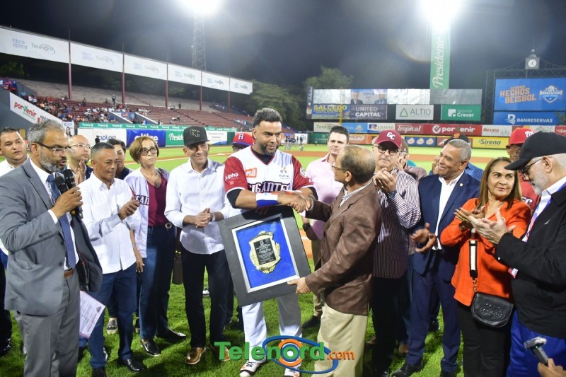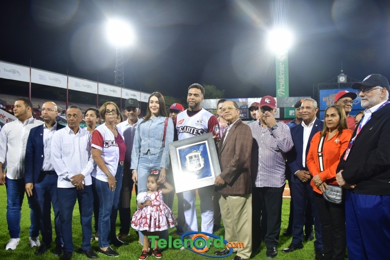 Dentro de los reconocimientos , también recibió un cuadro que retrata la actuación histórica que tuvo, cuando el miércoles 26 de noviembre del 2008 en el estadio Quisqueya, remolcó 10 carreras en un triunfo de su equipo 21-13 sobre Los Tigres del Licey.