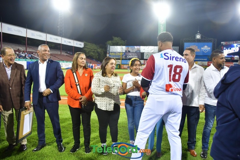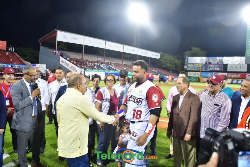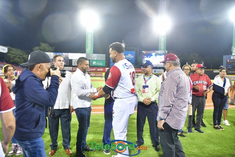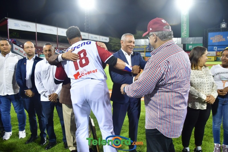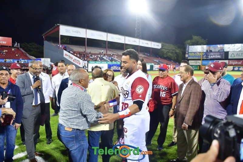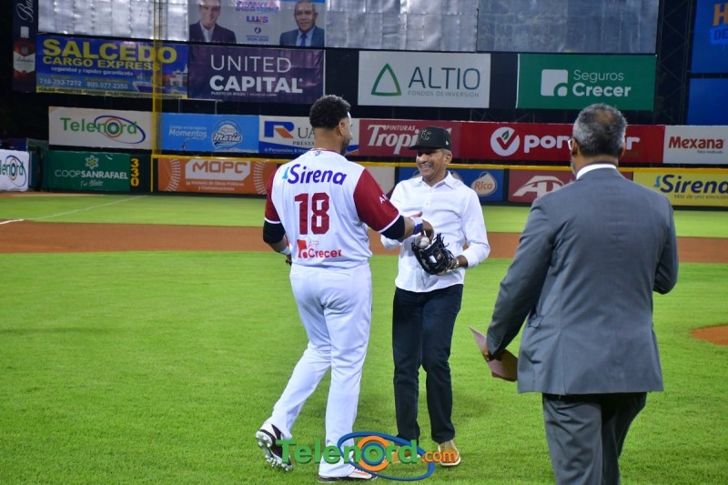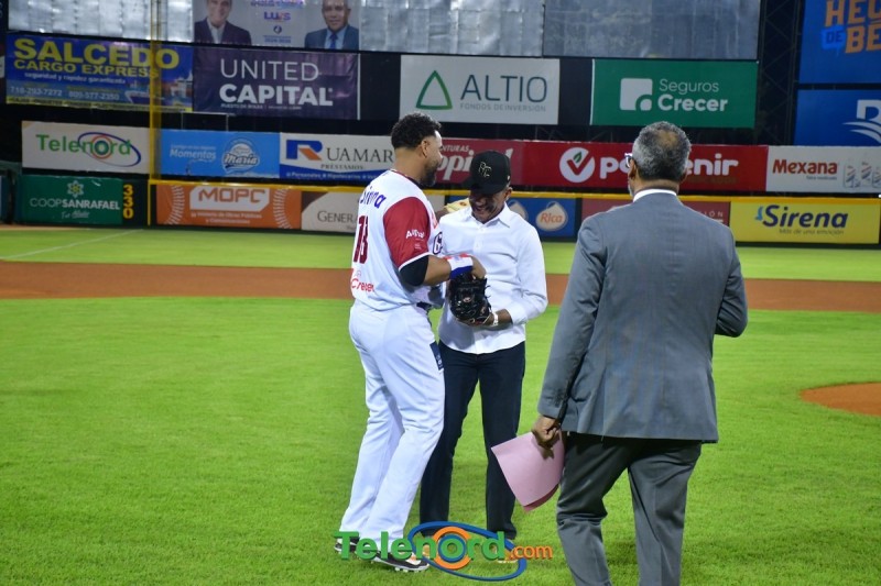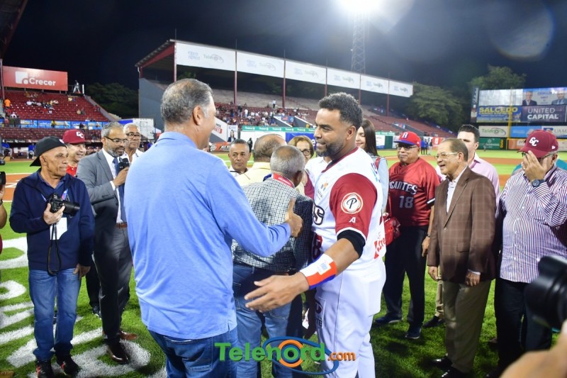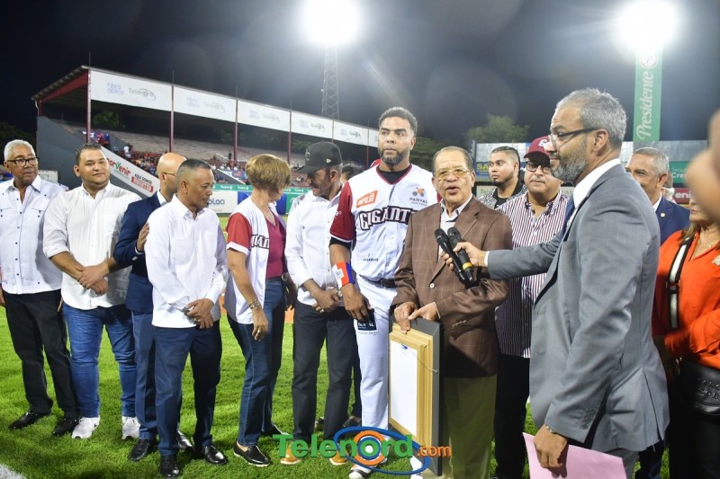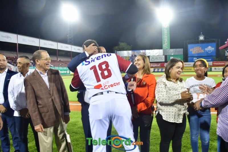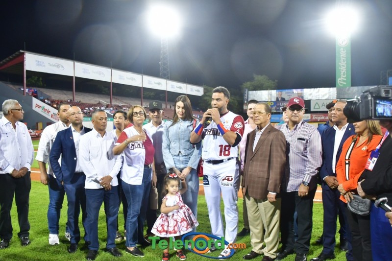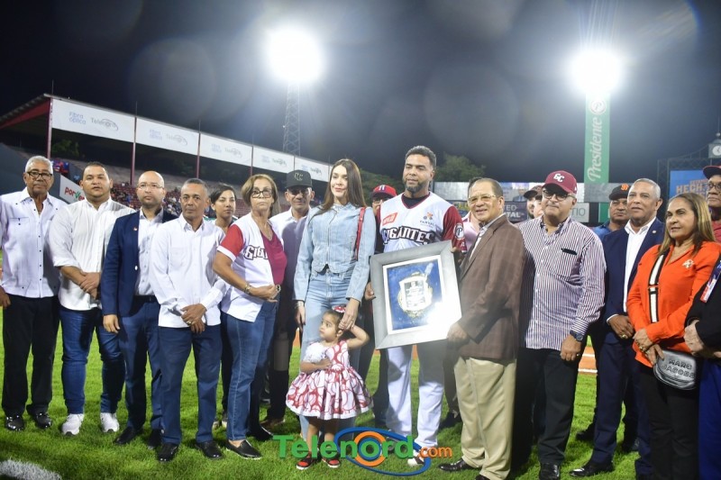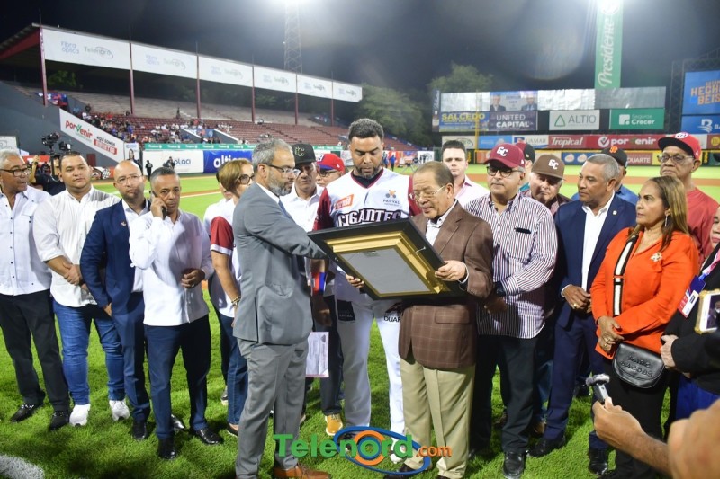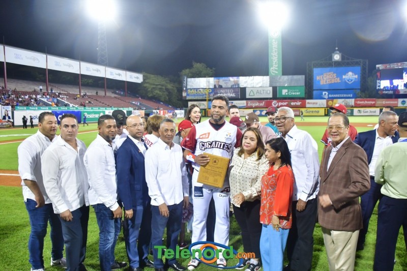 Dentro de los reconocimientos , también recibió un cuadro que retrata la actuación histórica que tuvo, cuando el miércoles 26 de noviembre del 2008 en el estadio Quisqueya, remolcó 10 carreras en un triunfo de su equipo 21-13 sobre Los Tigres del Licey.