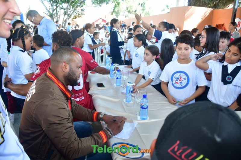 Jugadores y coaches que integran el equipo cibaeño como Hansel Alberto, Carlos Peguero, entre otros, compartieron con los pequeños Gigantes y personal docente del centro educativo, firmando autógrafos, charlando y respondiendo preguntas.