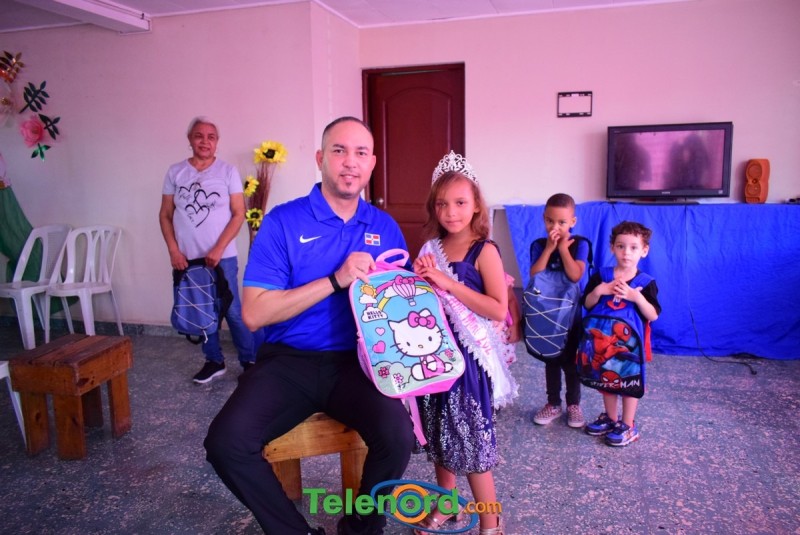 San Francisco De Macorís.- La Escuela de Baloncesto David Díaz en coordinación con la Fundación de Mujeres Comunitarias de la Provincia Duarte hizo entrega de útiles escolares a decenas de niños procedentes del sector San Martín.
