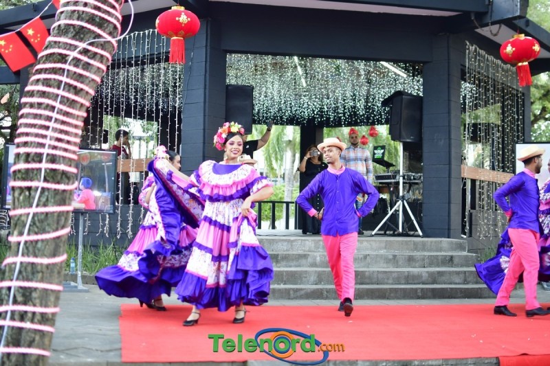 En horas de la tarde, el embajador Luning, el alcalde Díaz Paulino y el ex –alcalde Ng. de la Rosa, cortaron la cinta para dejar inaugurada la zona de la comunidad china en el centro de la ciudad, luego la caminata de leones y dragón y jóvenes con trajes de etnias de china y Hanfu caminaron hacia el parque Duarte, donde los presentes se trataron de presentaciones artística, danzas chinas, kung Fu individual, entre otras.