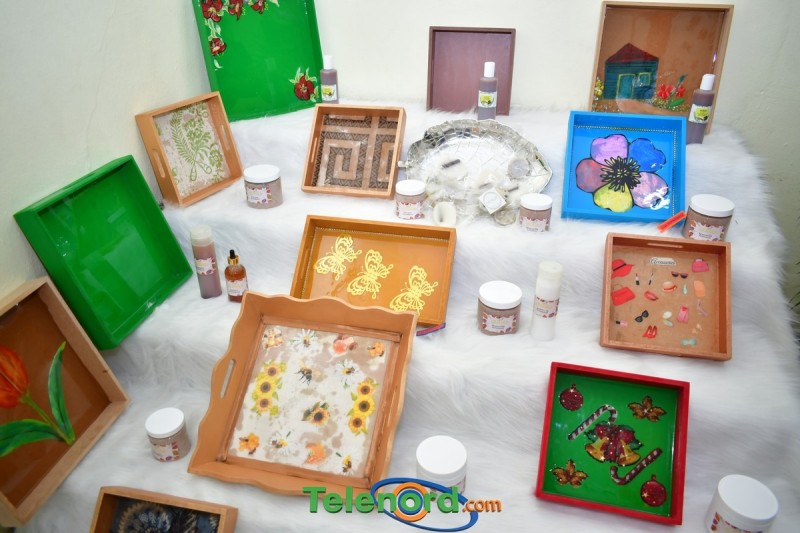 En esta exposición, los estudiantes presentaron trabajos de bordados, repostería, sastrería, vestuario, pintura, dibujos, artículos del hogar, decoración de interiores, cocina, entre otros.