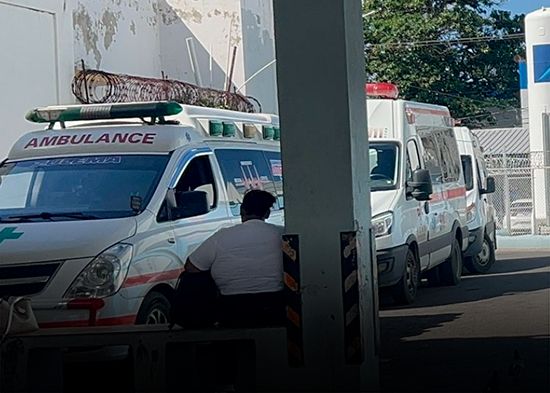 Con el motor encendido, las luces apagadas y pacientes que podrían empeorar con el paso de las horas, permanecen las ambulancias estacionadas frente a la emergencia del Hospital Regional Universitario José María Cabral y Báez, de Santiago.