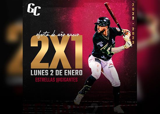 San Francisco de Macorís. – los Gigantes anunciaron que para el partido de hoy Vs Estrellas Orientales en San Francisco de Macorís tendrán oferta en boletería de 2 x 1.