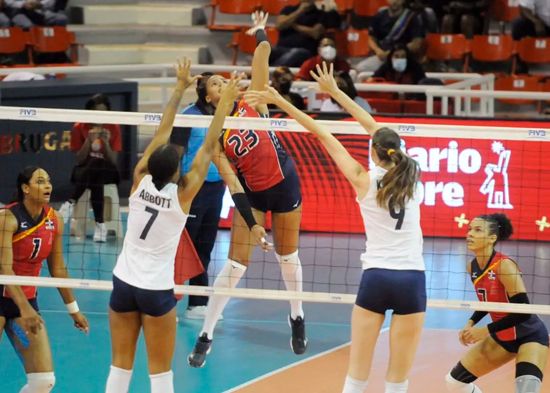 Santo Domingo.-El sexteto femenino de la República Dominicana cerró de manera invicta (5-0) la ronda preliminar de la Copa Panam tras derrotar anoche 3-0 a Estados Unidos, (25-22, 25-15 y 25-12) y se medirá esta noche a las siete en la segunda semifinal ante Canadá, que concluyó en cuarto puesto, en el Palacio de Voleibol «Ricardo- Gioriver-Arias.