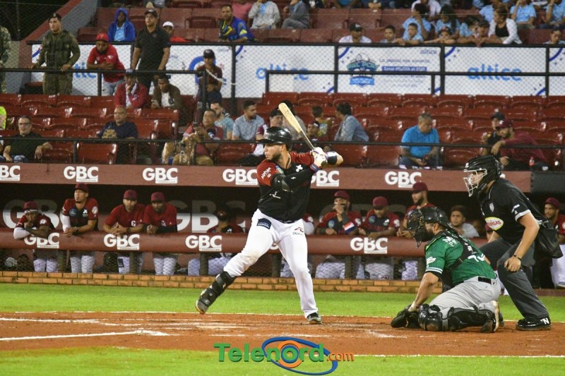 Los Gigantes anotaron cuatro vueltas en el cierre de la primera entrada, Wilmer Difó conectó hit al al left, Leury García cayó con rodado por la inicial avanzado a la intermedia y avanzó a tercera por wild pitch, Noelvi Marte recibió transferencia, Carlos Franco impulsó a Difo con sencillo al center Yermín Mercedes empalmó cuadrangular remolcador de tres carreras por el left.