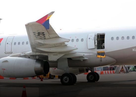 Un pasajero fue arrestado este viernes por abrir la puerta de emergencia del avión que se encontraba en pleno vuelo en Corea del Sur.