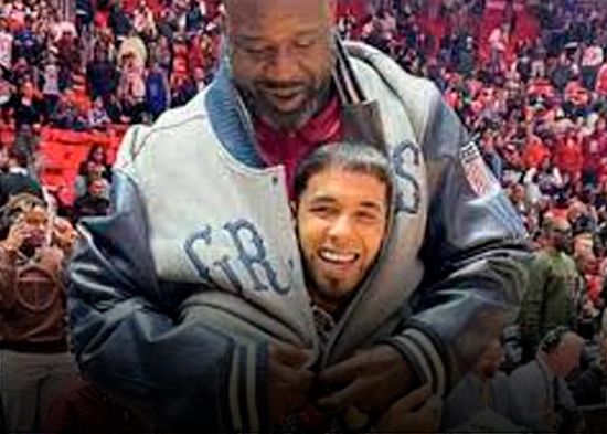 Anuel aparece junto a Shaquille O'neal durante el Juego de Las Estrellas de la NBA
