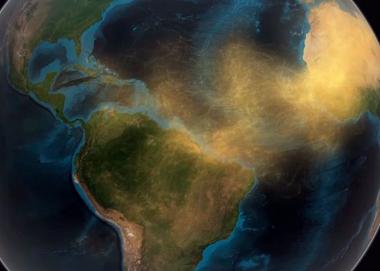 Los trackers del polvo del Sahara estudian las nubes y los aerosoles y evaluar cómo afectan los sistemas meteorológicos. En el caso de este fenómeno han totalizado que, en promedio, una asombrosa cantidad de 182 millones de toneladas de polvo cada año pasan por la costa occidental de África que limita El Sahara. Como señala el Equipo de Noticias de Ciencias de la Tierra de la NASA , eso es suficiente polvo para llenar unos 690.000 semirremolques. Luego, el polvo cruza el océano Atlántico. Allí, 27,7 millones de toneladas se depositan en la cuenca del Amazonas.