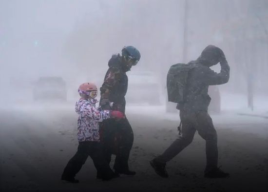 Los meteorólogos dijeron que un ciclón bomba —que ocurre cuando la presión atmosférica desciende muy rápidamente durante una tormenta intensa— se desarrolló cerca de los Grandes Lagos, provocando condiciones de ventisca, incluidos fuertes vientos y nieve.