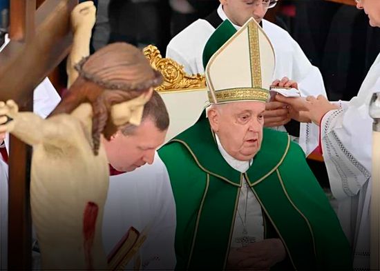 No obstante, esta mañana llegó a la plaza, tras las intensas lluvias de la víspera, e inauguró la misa leyendo su introducción y el acto penitencial, sentado en un sillón junto al altar, dado que la eucaristía será celebrada por el cardenal Robert Francis Prevost.