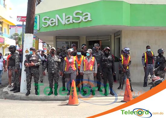 San Francisco De Macorís.- Efectivos militares fueron desplegados frente la oficina del Seguro Nacional de Salud (SeNaSa) en el municipio, donde se llevaba a cabo la juramentación de la nueva directora regional, en la mañana del martes 22 de noviembre.