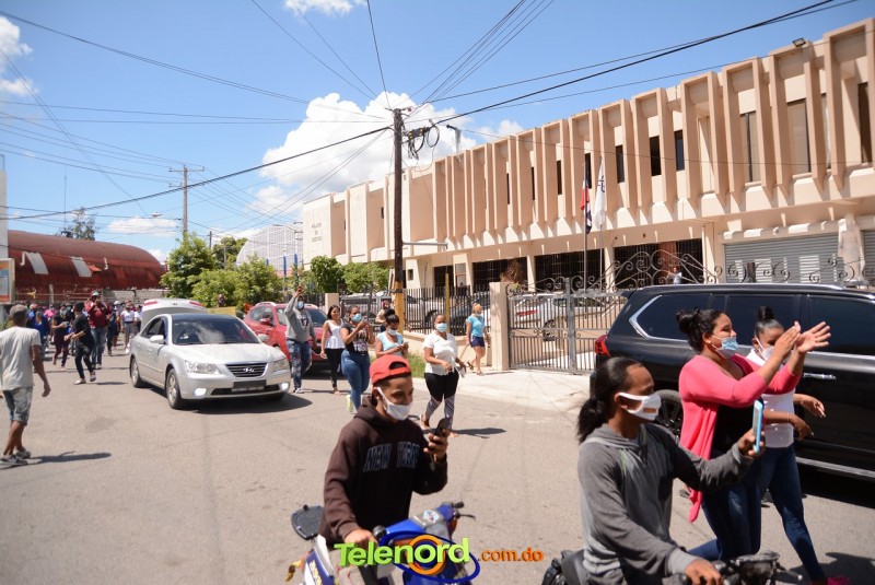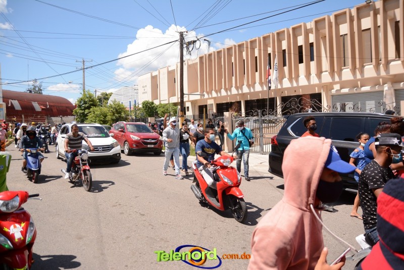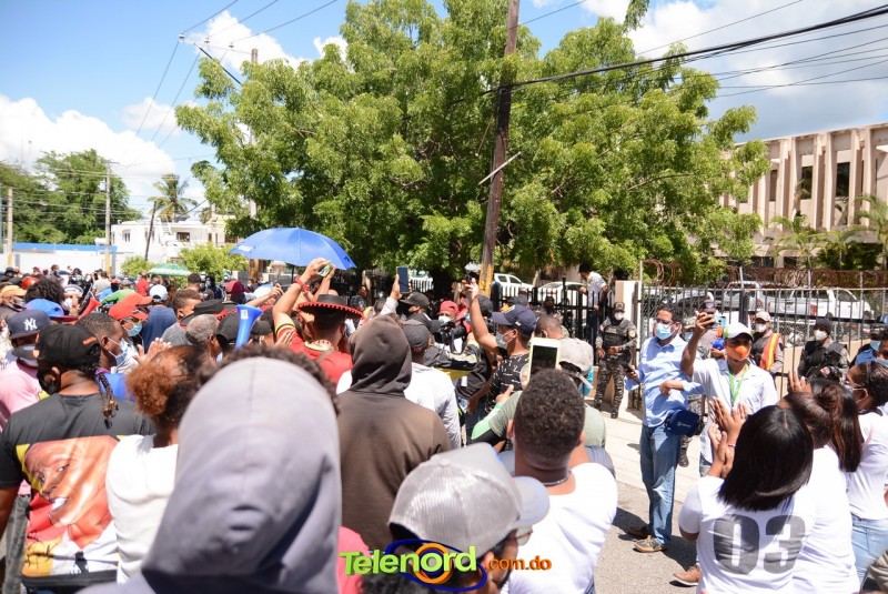 San Francisco De Macorís.- Cientos de personas se concentraron frente al Palacio de Justicia, para manifestarse en apoyo al artista urbano Miguel Ángel Valerio “Don Miguelo”, detenido desde el lunes 24 de agosto por la participación de menores de edad en videos.