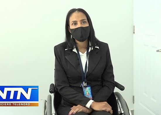 Ana María Alexis, padece distrofia muscular, en silla de ruedas y asistida por sus compañeros arriba a la oficina de relaciones públicas dispuesta a demostrar su potencial y cumplir con las tareas establecidas.
