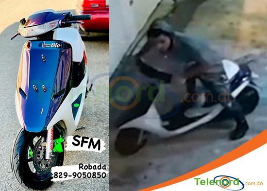 Las imágenes muestran a una persona de tez oscura, que se marcha a bordo de la passola marca Dio de color blanco con azul, reportada el martes 14 de septiembre como robada.