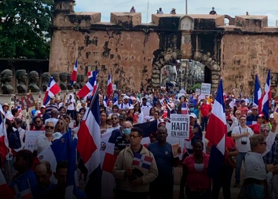 Cientos de dominicanos participaron este sábado en una “Marcha Patriótica” convocada por organizaciones y entidades encabezadas por el Instituto Duartiano, para reclamar a la comunidad internacional que actúe ante la crisis sociopolítica y de violencia que padece el vecino Haití.
