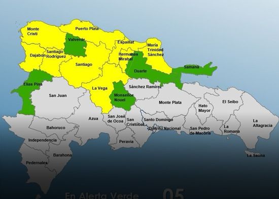 El Centro de Operaciones de Emergencias (COE), elevó a 14 las provincias en lertas por la incidencia de una vaguada, estándo nueve de ellas en amarilla y 5 en verde
