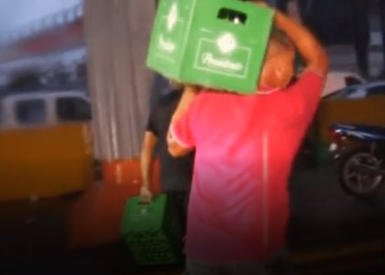 Un camión de la Cervecería Nacional Dominicana se volcó en la avenida Kennedy esta noche, mientras se registraba un fuerte temporal en todo el país. Varias personas aprovecharon la situación para robar cajas de cervezas que cayeron al suelo tras el accidente.