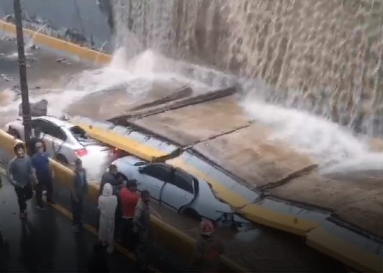 Varias personas quedaron atrapadas en sus vehículos luego de que una de las paredes laterales del desnivel de la avenida 27 de Febrero con Máximo Gómez colapsó.