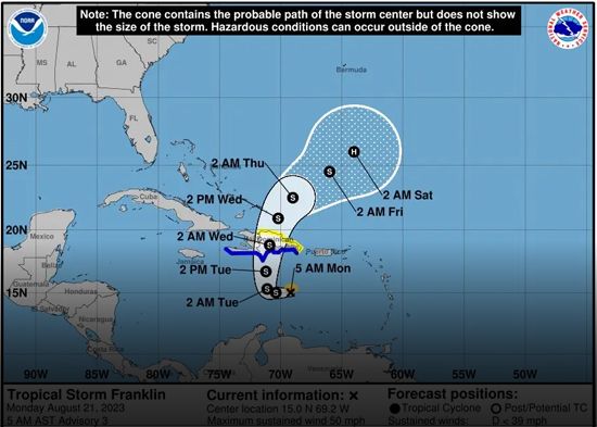 Leer más…Trayectoria pronosticada de la tormenta tropical Franklin