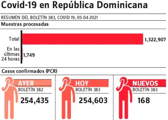 Por otro lado, La República Dominicana hasta el lunes había logrado vacunar con las dos dosis reglamentarias a 320,898 personas contra la covid-19.