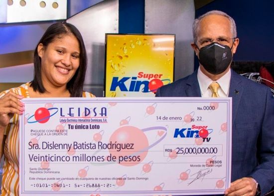 La Lotería Electrónica Internacional Dominicana. S.A (LEIDSA) entregó a Dislenny Batista Rodríguez, su premio de 25 millones de pesos tras resultar ganadora en el sorteo “Súper Kino TV”, del pasado viernes 17 de diciembre 2021.