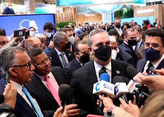 El presidente Abinader conversó con los productores del programa El Sol de la Mañana desde la Feria Turística FITUR 2022 que se celebra en Madrid, España.