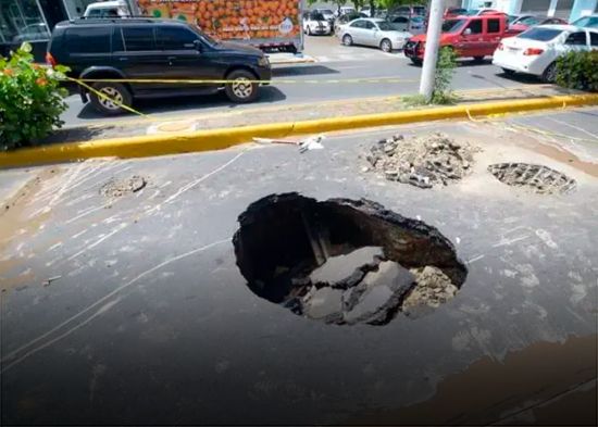 Santo Domingo.-Un nuevo hundimiento de tierra se ha producido en la avenida Las Carreras, Santiago luego de queun camión pesado pasara por esa calle, provocando un socavón en uno de los carriles.