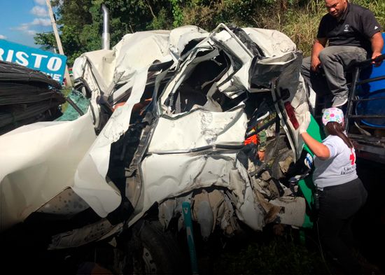 Pedro Quezada, director de la Defensa Civil en Monseñor Nouel, explicó que el accidente involucró a vehículos pesados y livianos por lo que se reportan una cantidad indeterminada de heridos de los cuales al menos cinco se encuentran atrapados.