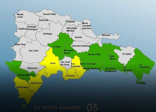 Las provincias en alerta amarilla son: San Cristóbal, Barahona, Pedernales, Peravia y Azua.