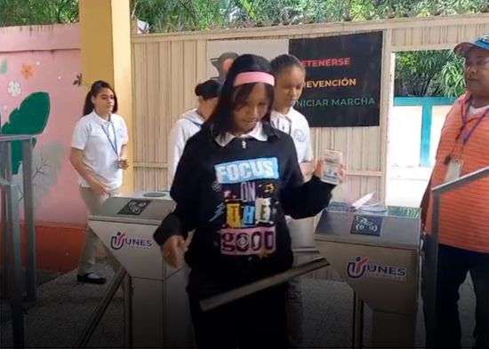 El Politécnico Altagracia Iglesias de Lora de Santiago estrenó esta semana el sistema de control de asistencia desarrollado por la empresa Unes Dominicana como un plan piloto que busca notificar a los padres si su hijo/a llegó o no a la escuela.