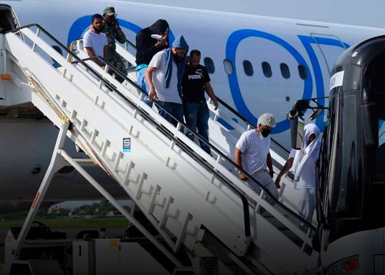 El grupo llegó al país en un Airbus 321, operado por la empresa privada Global X, aerolínea que realiza la mayoría de vuelos de deportación organizados por el Servicio de Inmigración y Control de Aduanas de Estados Unidos (ICE).