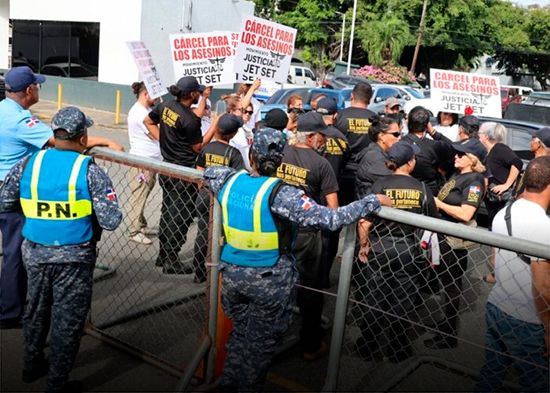 Santo Domingo.–Entre lágrimas, consignas y pancartas reclamando justicia, familiares de las víctimas de la tragedia ocurrida en la discoteca Jet Set se congregaron en las inmediaciones del Palacio de Justicia de Ciudad Nueva, donde se conocía el proceso judicial contra los propietarios del establecimiento, Antonio y Maribel Espaillat.