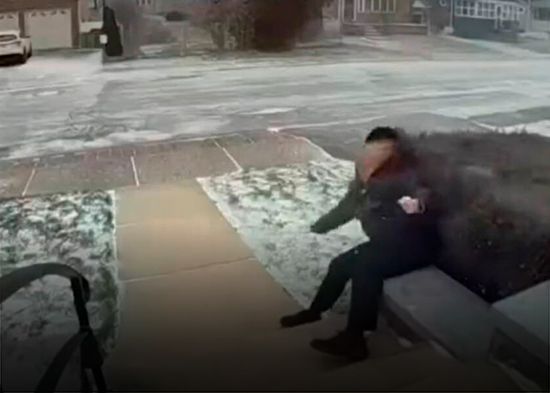 Una mujer identificada como Diane Miller acabó en el piso por culpa de una fuerte ventisca que azotó a la localidad estadounidense de Lackawanna. Un video, difundido luego en las redes sociales, captó a la dama subiendo trabajosamente unas escaleras. Al llegar a una puerta, logró abrirla y trató de asirse para evitar ser derribada por el viento, pero no lo consiguió. La fuerte ráfaga la levantó y ocasionó que aterrizara en la entrada del jardín. Pese al golpe, pudo incorporarse por sí misma.