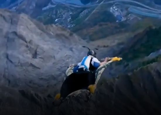 Un vuelo a lo Disney: entusiasta del salto base maneja una 'alfombra mágica' (VIDEO)