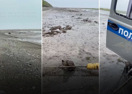 Policías rusos rescataron en la península de Kamchatka a un cachorro de oso enredado en redes de pesca a orillas del mar de Bering. Los residentes locales informaron que el osezno emitía ruidos lastimeros y necesitaba ayuda, y que una osa hembra agitada se encontraba cerca. A continuación, los agentes llegaron al lugar y lo liberaron con cuidado, tras lo cual el animal corrió feliz hacia su madre, que vigilaba de cerca la escena.